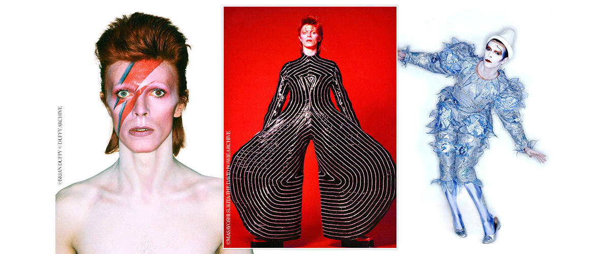 The exhibition curators had unprecedented access to Bowie’s personal archives and collections. Items in the museum show include sixty custom-made performance costumes —including ones from Ziggy Stardust and Aladdin Sane—set designs, personal photographs and videos, handwritten lyrics, Bowie’s musical instruments, album artwork, journals, music videos and performance films, and unreleased audio clips from his longtime producer and collaborator Tony Visconti.