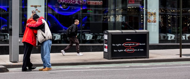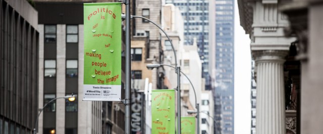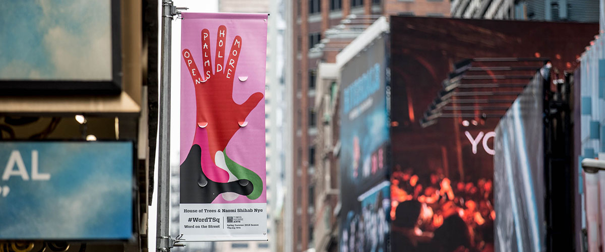 Word on the Street is a public art collaboration between the artist collective House of Trees and Times Square Arts. The project evolved from an exhibition of protest banners and signs from last year’s national Women’s March for resistance. The new version of Word on the Street is now up around New York City’s world famous Times Square.