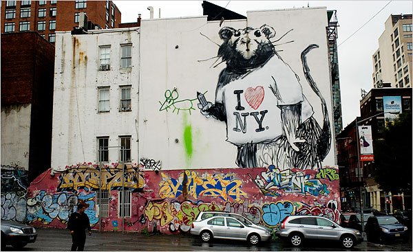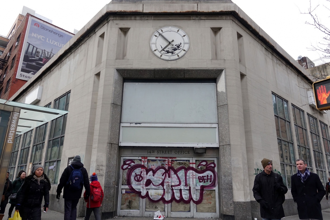 Love him or hate him, the world’s most notorious street artist always manages to keep his brand alive with timely pieces. Banksy is apparently back in New York City this week with his trademark Rat. The famous rodent is now adorning a clock face on a former bank building at 14th street and 6th avenue in Manhattan. But catch it while you can because the entire structure is due for demolition any day now.
