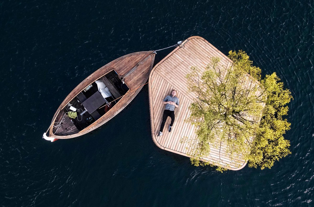 CPH-Ø1 is a 215 square-foot handmade floating platform with a tree planted in the center. The min-island represents the first piece in a new project from local design studio Fokstrot. The “Parkipelago” is an innovative concept in public spaces coming to Copenhagen’s inner harbor this year. Built in local boat yards using traditional wooden construction techniques, the floating islands will all be hand-built from locally sourced sustainable or recycled materials.