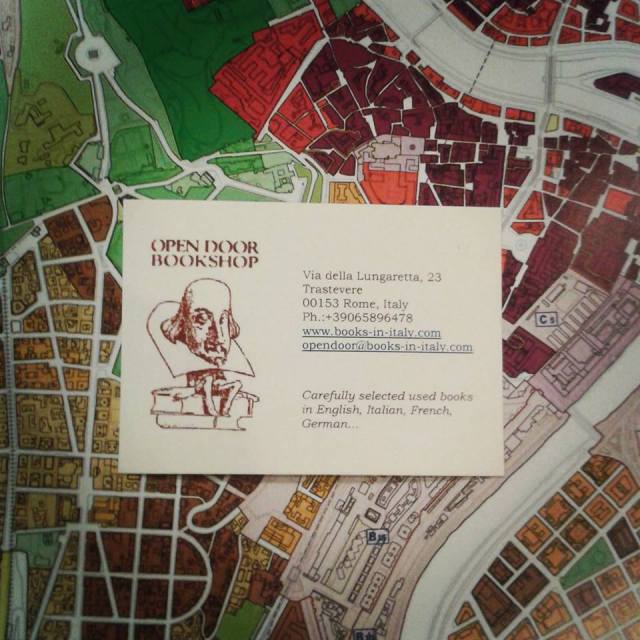 I don’t remember if I found the Open Door Bookshop on my first or second visit to Rome, but I do recall meeting the store’s founder the writer and journalist Charles Nopar. Secluded on a lovely street in the picture-postcard Trastevere neighborhood, the Open Door is an Aladdin’s cave of treasures for book lovers, packed floor to ceiling with secondhand and antiquarian titles. Although the forty year-old bookstore specializes in English language books, you can discover some great possibilities in Italian and French as well. The only problem is that you won’t want to leave and get back to your tourist itinerary once you start browsing.