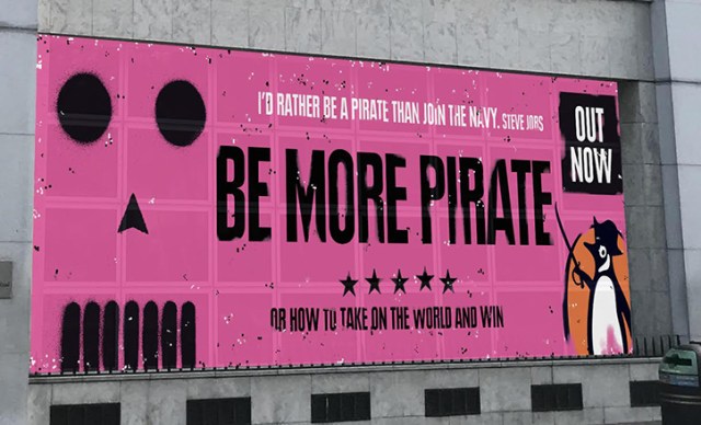 First-time author San Conniff Allende’s new book Be More Pirate: Or How to Take On the World and Win is all about audacity and risk taking. To prove that he walks the walk, Allende, disguised as a contractor, plastered an eight-meter-long pink fluorescent advertising banner for the book across the facade of the London headquarters of his publisher, Penguin Random House. No word yet on the response to the guerrilla marketing campaign from the publishers.