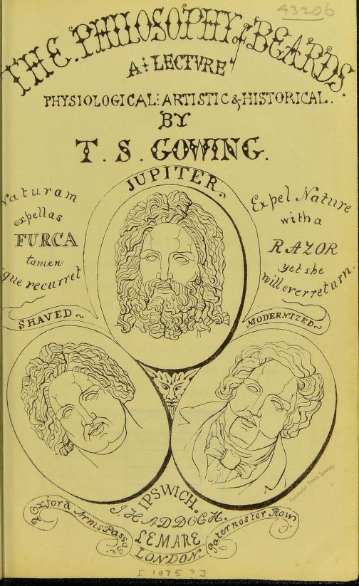 Gowing was writing at a time when physiognomy — the art of reading a person’s character in their facial features — was still popular in Europe and America. So it is no surprise to learn that “the absence of Beard is usually a sign of physical and moral weakness”. Gowing also takes aim at the notion that beards are unhealthy. Far from being unhygienic because of their propensity to trap feculent particles, “the beards of foreign smiths and masons filter plaster dust and metal from the air, protecting the lungs.”