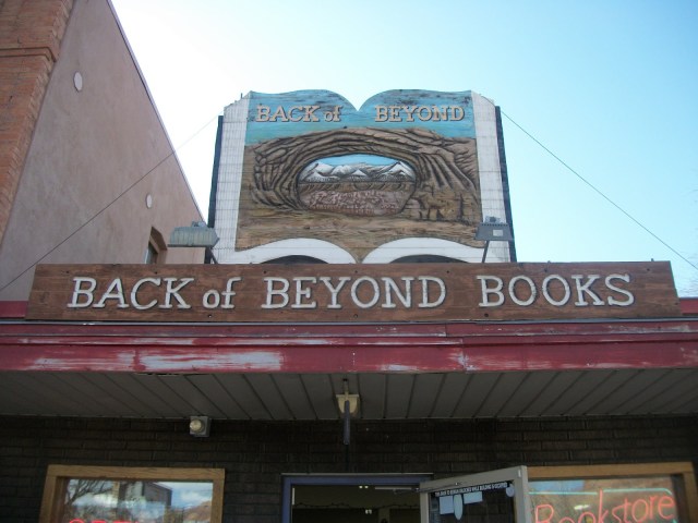 Back of Beyond Books’s name was taken from famed eco-warrior and author Edward Abbey’s best known fictional work “The Monkey Wrench Gang.” The main character of the novel Seldon Smith was an outfitter, and the name of his company was “Back of Beyond.”