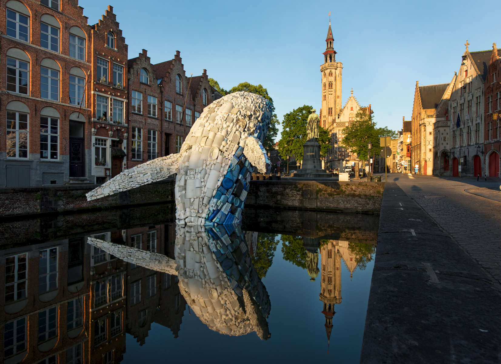 The Skyscraper (Bruges Whale) project was created for the 2018 Bruges Triennale to raise awareness about marine pollution around the world. The whale, along with the rest of the Triennale “Liquid City” ,installations will be on view until September 16, 2018.