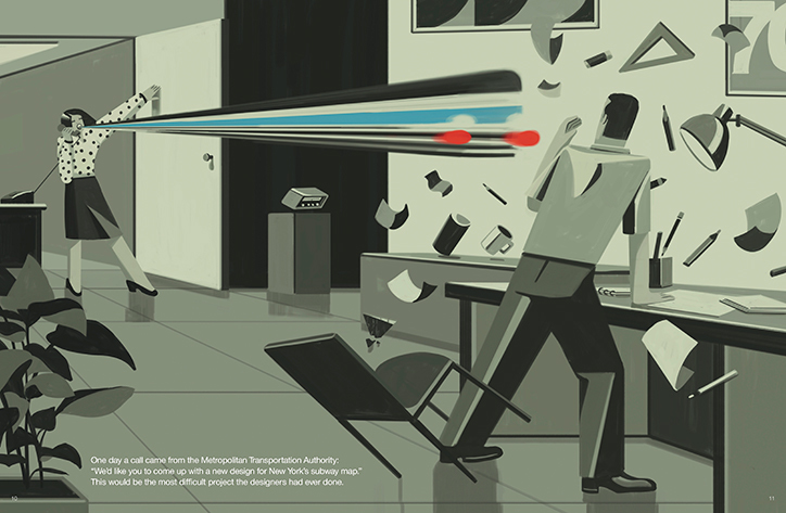 Italian illustrator and author Emilliano Ponzi has released a marvelous book in collaboration with the MoMA in New York City introducing young readers to the work of iconic graphic designer Massimo Vignelli. Using illustrations of trains, subway stations, advertisements and the NYC skyline, Emiliano’s book tells the story of how Vignelli created an “easy-to-navigate subway map in 1972”. The Great New York Subway Map aims to show how graphic design can be used for “problem-solving” and turning “chaos to order”.