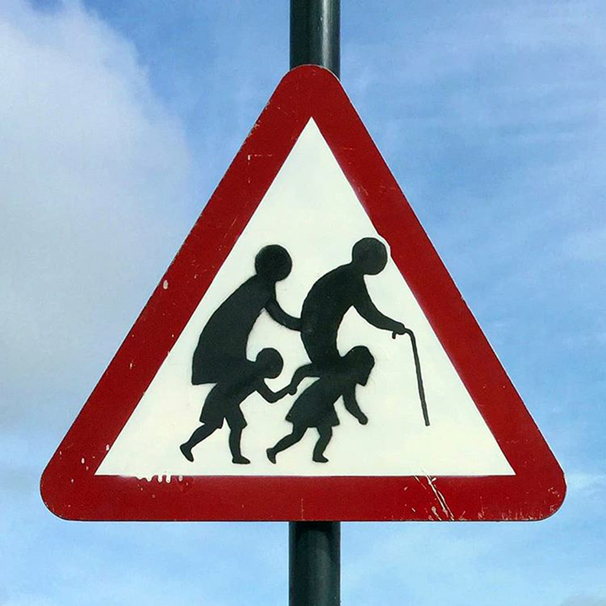 The slippery street artist(s) known as Banksy recently dropped a new work in the old English seaside town of Clevedon. As an “old” person I resent the implication, but it does make a point.