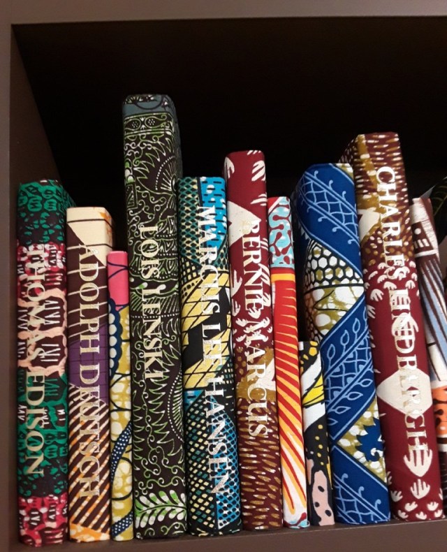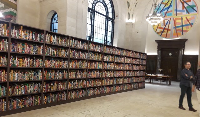 Cleveland’s main public library branch is hosting an extraordinary exhibition created by renowned British-Nigerian artist Yinka Shonibare. The American Library consists of 6,000 books bound in colorful batik fabric displayed on back-to-back bookshelves. Many of the volumes are gold-stamped with the names of Americans who are first generation immigrants ,or whose antecedents were immigrants.
