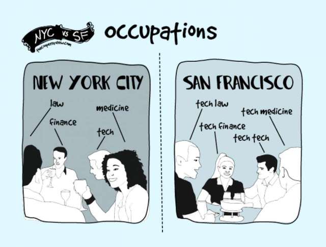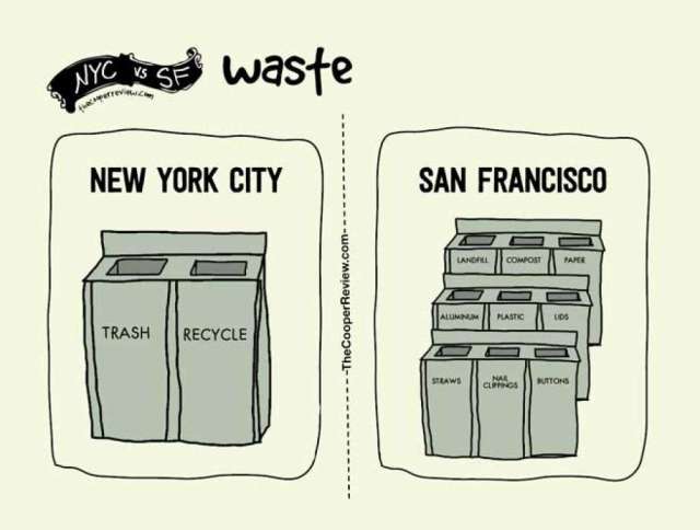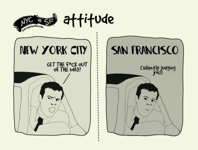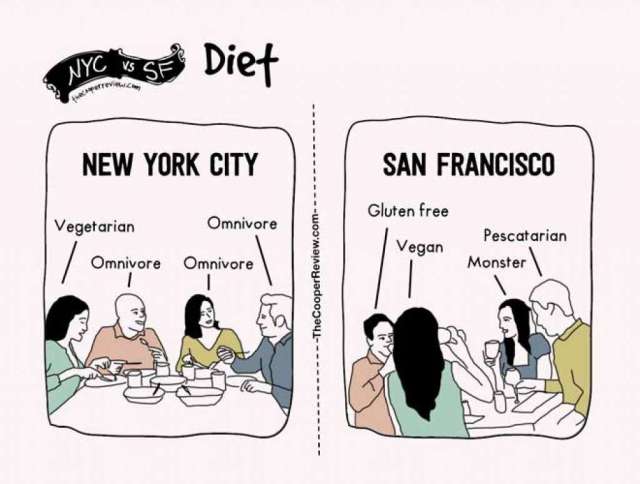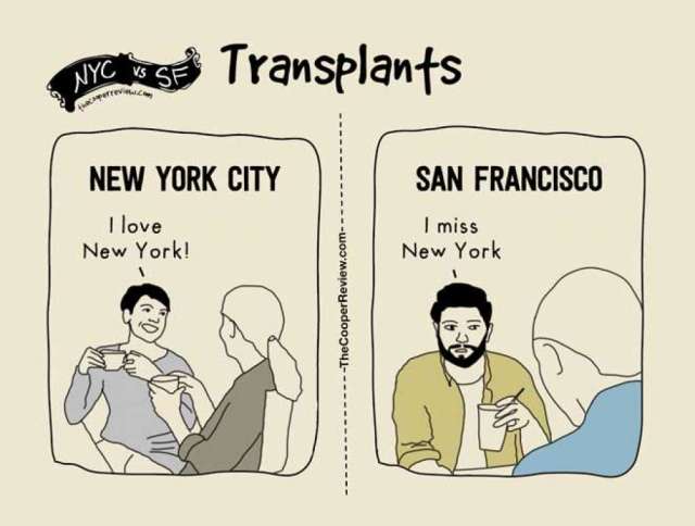 After living in New York City for five years, writer and comedian Sarah Cooper moved to San Francisco in 2015 and was amazed by the cultural differences between the cities. She decided to turn her observations into tongue-in-cheek illustrations, which she posted on her blog The Cooper Review. Even if you don’t know either city very well, you’ll get the insightful humor of the comics.