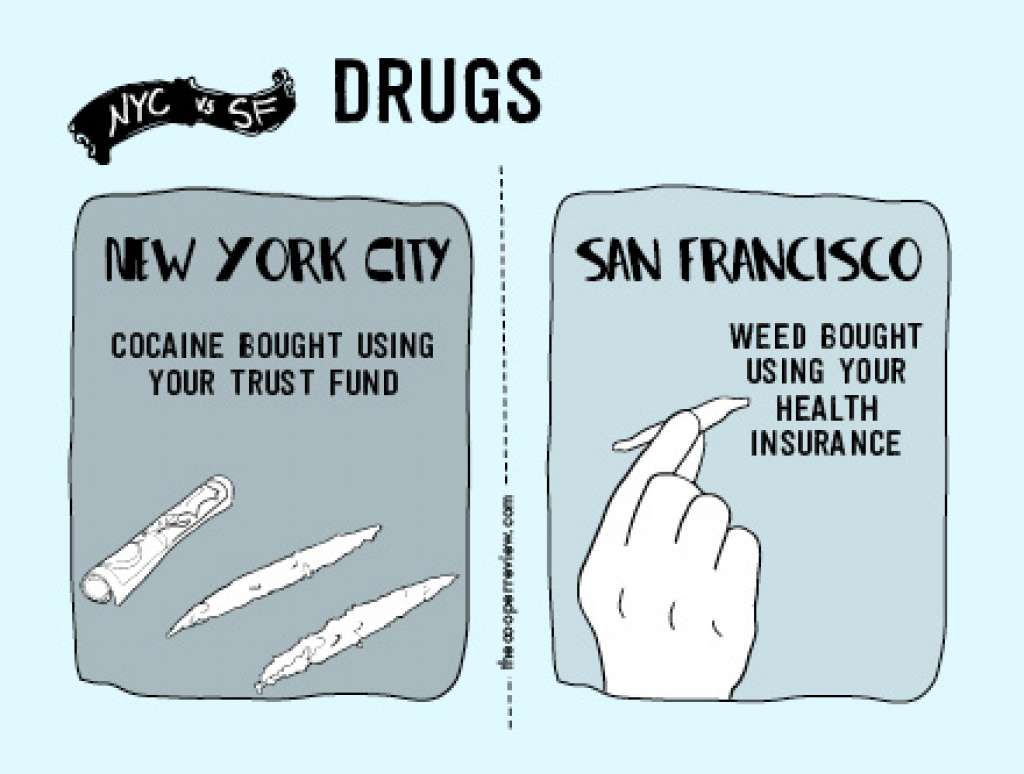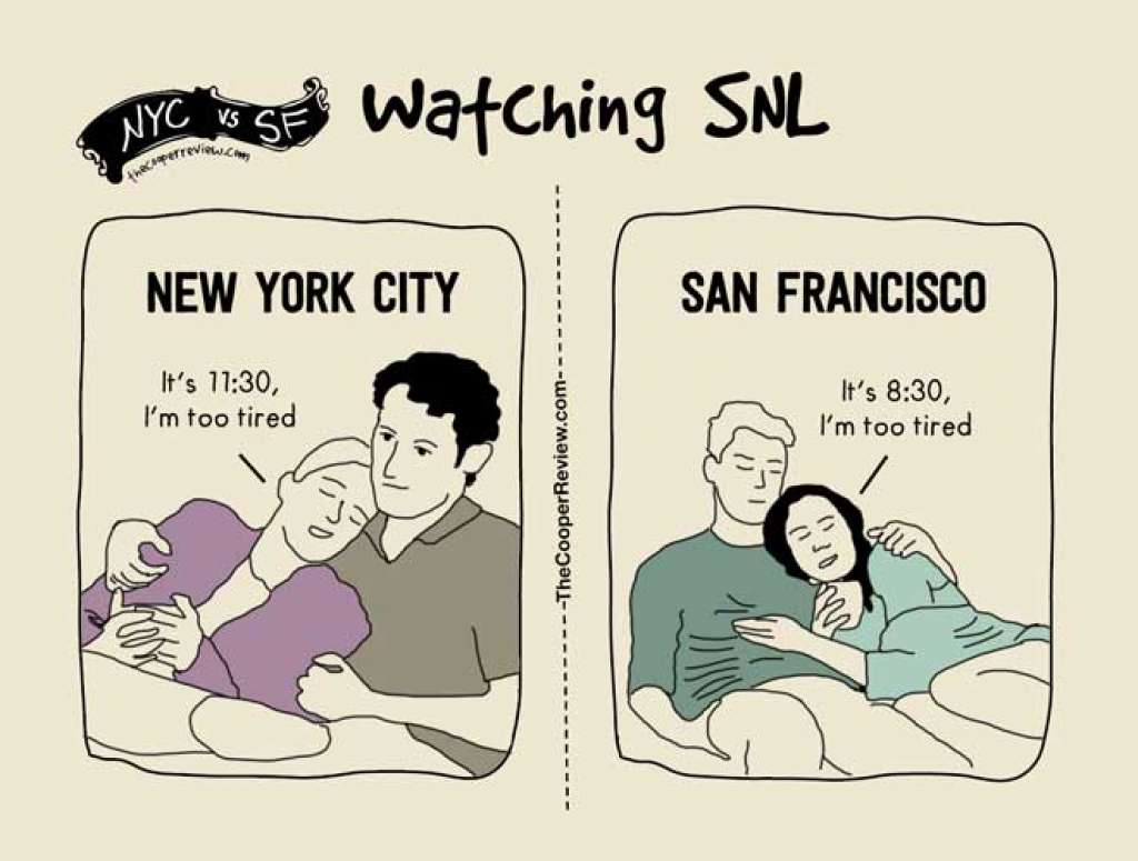 After living in New York City for five years, writer and comedian Sarah Cooper moved to San Francisco in 2015 and was amazed by the cultural differences between the cities. She decided to turn her observations into tongue-in-cheek illustrations, which she posted on her blog The Cooper Review. Even if you don’t know either city very well, you’ll get the insightful humor of the comics.