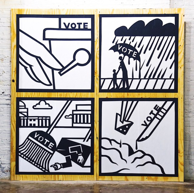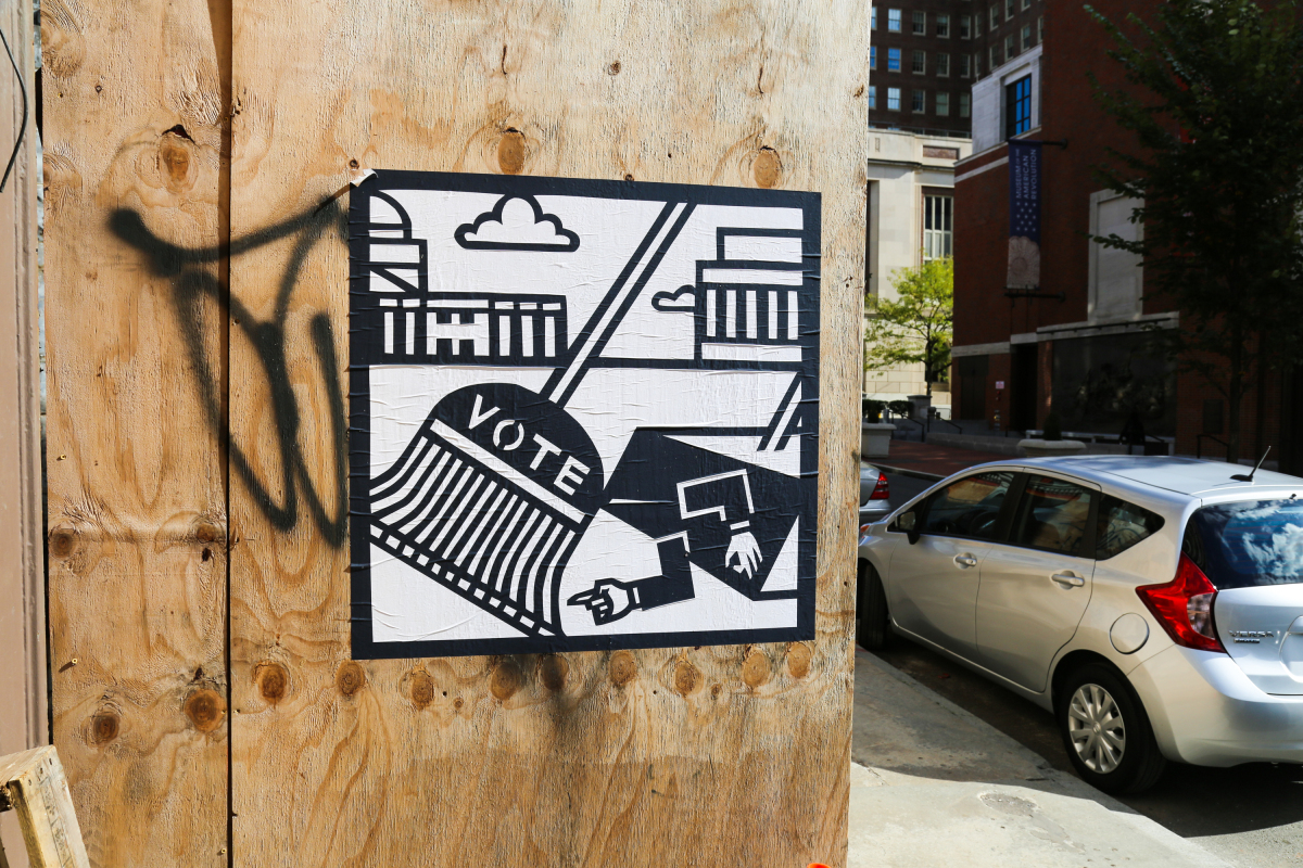 This past week street artist Joe Boruchow has been encouraging Philadelphia residents to get out the vote with wheatpastes around town.