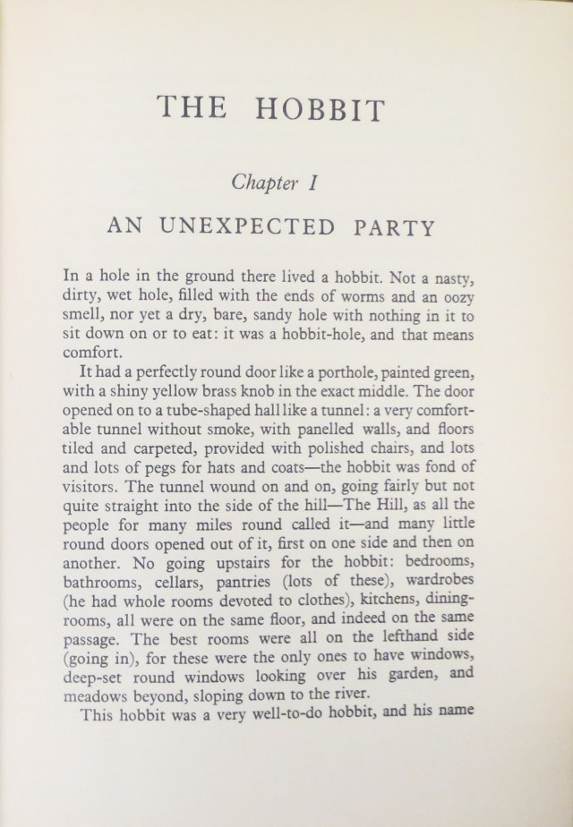 A buyer recently contacted me to help him find an American first edition of JRR Tolkien’s The Hobbit. Since the amount that he was willing to pay was ridiculously below the usual prices that the title brings, I didn’t even bother to search. But it did get me thinking about the early editions of the beloved book and how they varied by publication date.