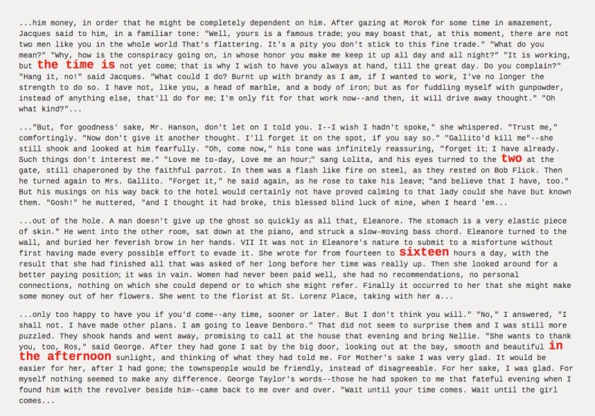 Artist, writer, and data scientist Ross Goodwin created this brilliant website that tells the current time in your own time zone using passages from public domain digital books available at Project Guttenberg. When you visit Text Clock, you will find paragraphs with red highlighted words providing the time. If you reload the page by pressing Control+R, you will get a completely different set of sentences.