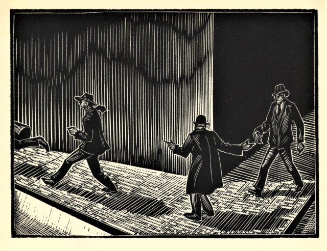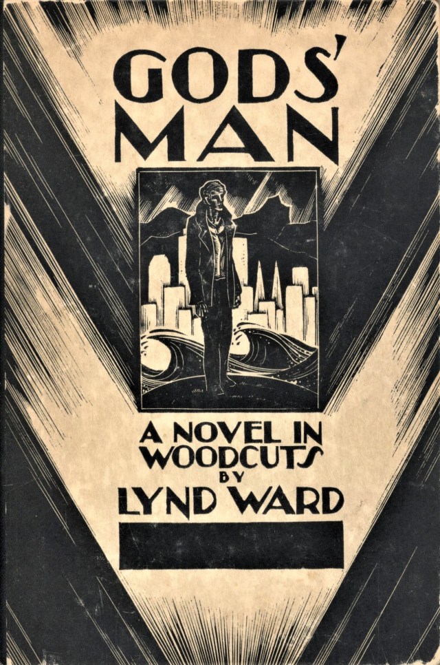 God’s Man, is comprised of 139 woodblock-prints. The narrative is about an artist who acquires a magic brush that brings wealth and power to the user. The artist begins to suffer from hallucinations when he realizes the world is corrupted by money.