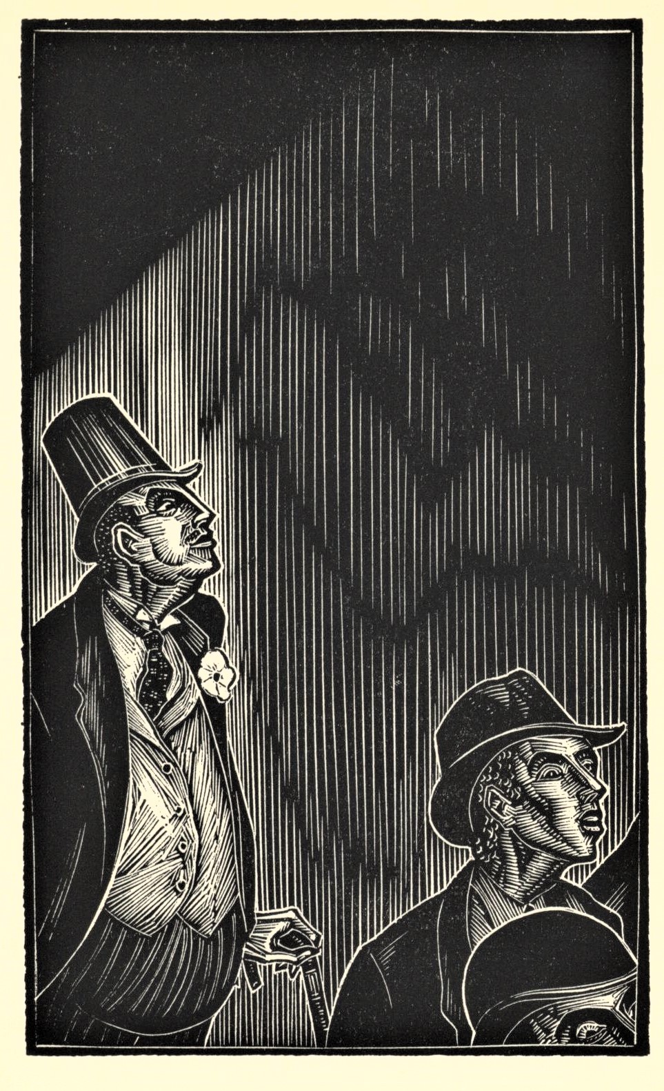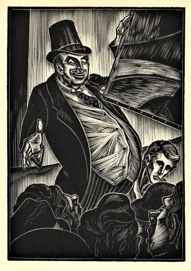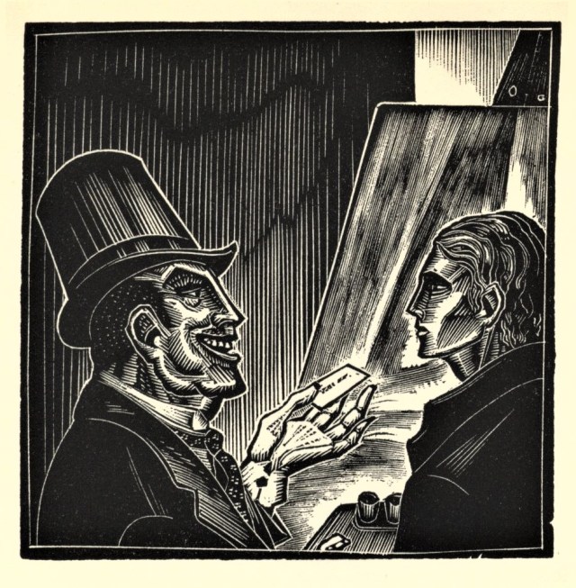 The first printing of God’s Man was published in two versions, a deluxe edition and a trade edition. The signed, limited edition of 409 copies was printed from the original wood engravings, but the first trade edition was printed from electrotype plates made from molds of the original boxwood woodblocks.
