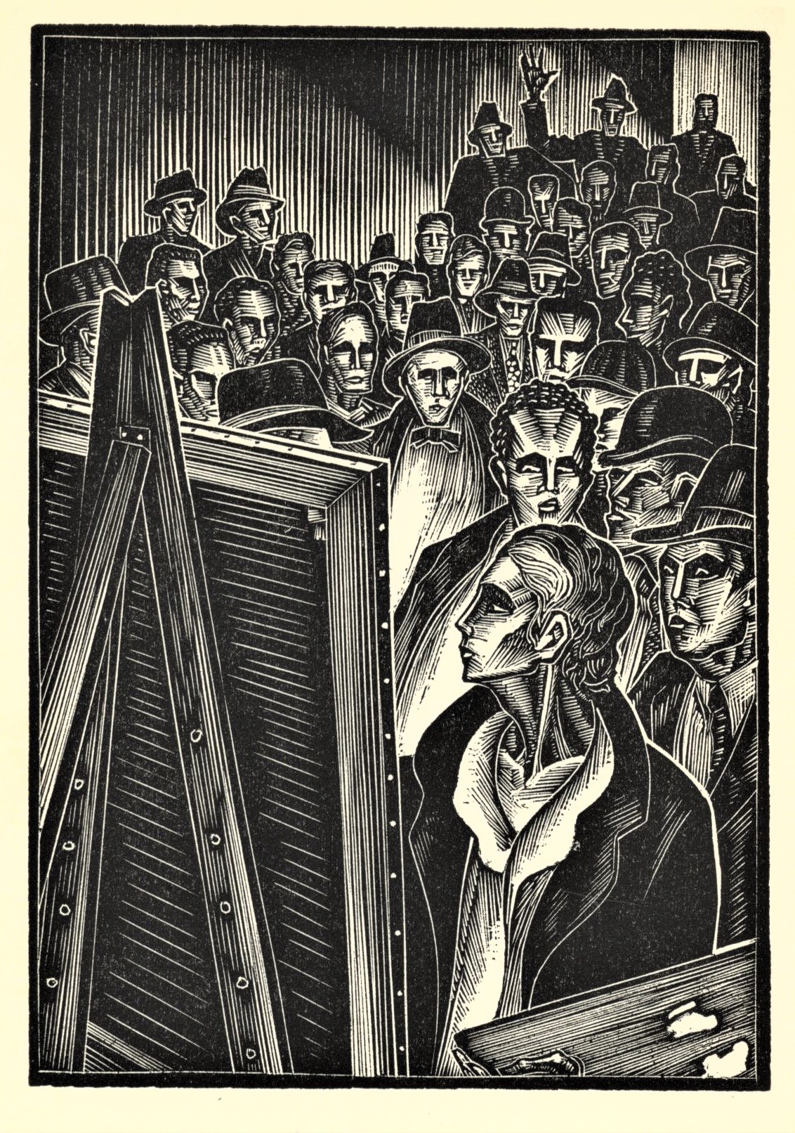 Created by artist Lynd Ward, God’s Man is the first American wordless novel. Published in 1929 by Jonathon Cape and Harrison Smith in New York, the book is an example of the wordless novel, a narrative genre made of only captionless pictures, usually woodcut and other relief printing techniques. While graphic novels typically use captions and dialogue, wordless novels tell a story without text. The genre began in Germany, with Frans Masereel’s earliest example published in 1918, which inspired Lynd Ward. The genre grew out of the German Expressionism, one of the most influential art movement in the twentieth century. The wordless novel influenced the development of the later graphic novel.