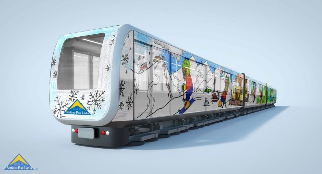In 1985, Serfaus began construction of the Dorfbahn by building a 1.3 kilometer-long tunnel beneath the village’s main street. Today, the four stop metro system operates a three car hovertrain year-round for free. The carriages use an air-cushion system and the entire metro is remotely operated.