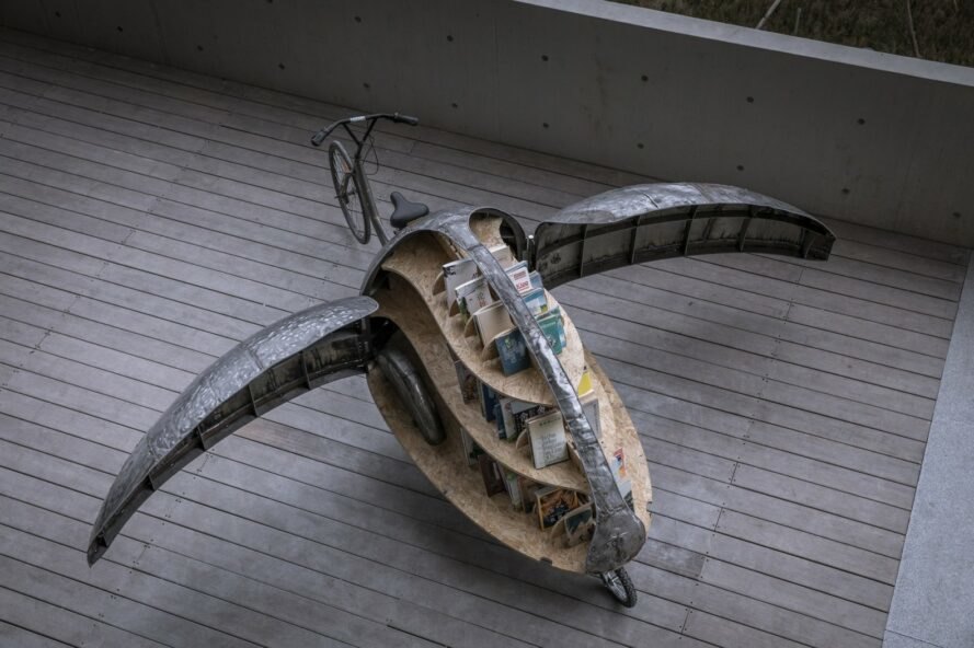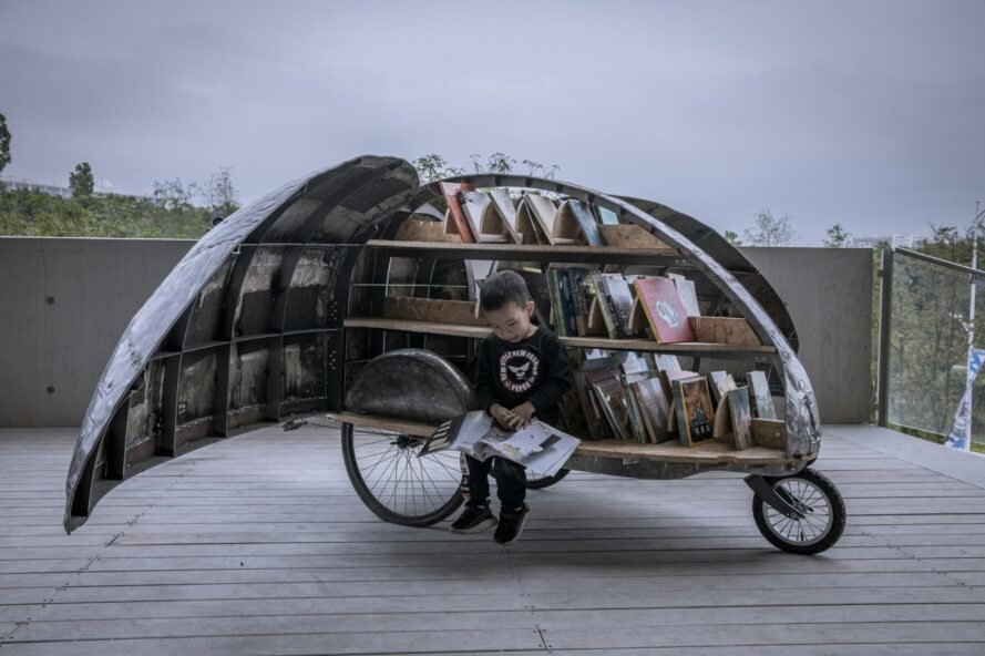 Beijing-based firm LUO Studio has created an adorable mobile mini-library crafted out of recycled industrial parts. Made from an abandoned bicycle, discarded iron car sheets and reclaimed wood, the Shared Lady Beetle is a tiny contraption in the shape of a beetle that roams on four wheels, bringing books to local children.