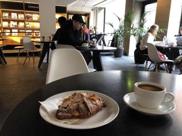 When the Hovedbibliotek was renovated in 2011, Democratic Coffee moved into a first floor spot. Since there are no barriers in the shop, you can actually bring your coffee into the library. But there’s always a selection of free reading materials inside the coffee bar from the library collection.
