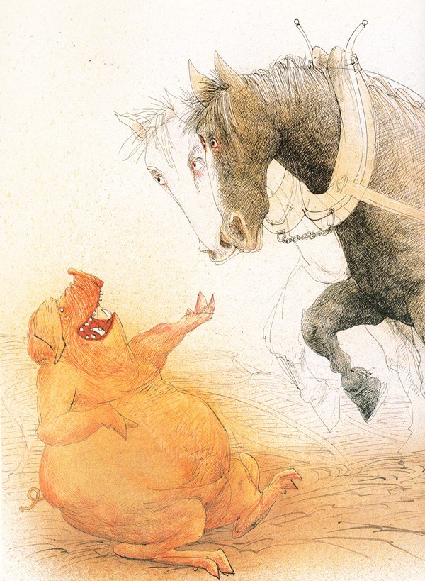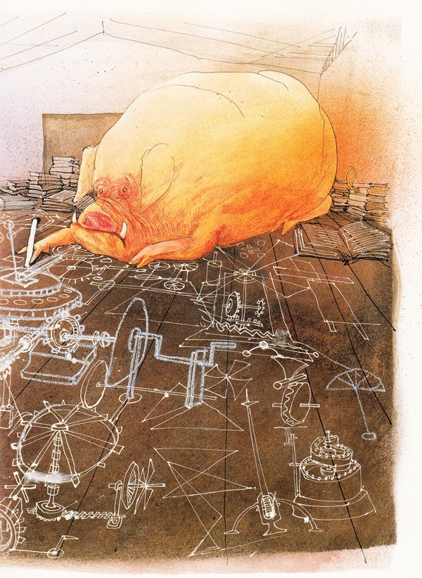 I recently ran across the wonderful 50th anniversary edition of the first U.S. publication of George Orwell’s Animal House. Issued in 1995, Animal House: A Fairy Story features 100 mindblowing illustrations by the inimitable Ralph Steadman.