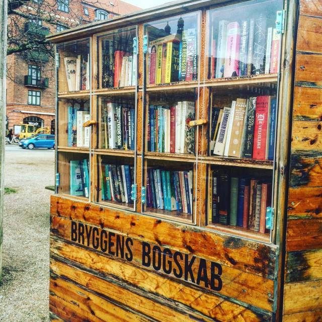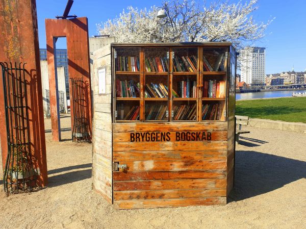 The Bryggens Bogskab, which was installed in 2017,is maintained by local volunteers. Book borrowers are asked to take no more than three books at a time and to replace any books that they keep.