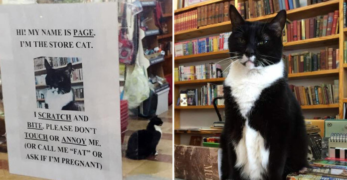 Page the bookstore cat is right down the street from where I live. She is as cranky as the sign suggests. Haha. I love bookstore kitties!