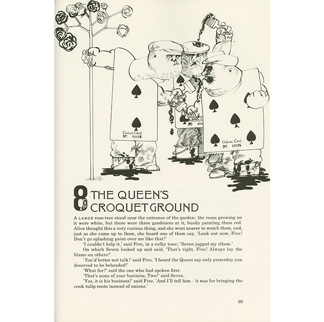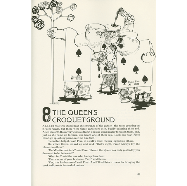 Those of you who visit TBTP on a regular basis know of my life-long affection for Lewis Carroll’s classic book. I have had many different editions since I was a child, but I have long found Ralph Steadman’s drawings for Alice to be both radical and a refreshing change from the many conventional Alice illustrations that preceded it. If you haven’t seen this brilliant take on the book before, I hope that you will appreciate just how clever it is.