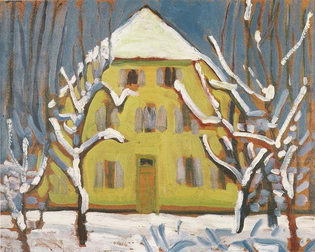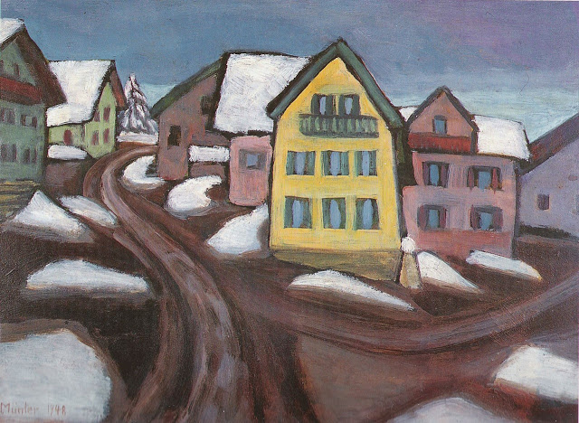 Gabriele Münter (Berlin, 1877 – 1962) was a German expressionist painter who was at the forefront of the Munich avant-garde in the early 20th century. She studied and lived with the painter Wassily Kandinsky and was a founding member of the expressionist group Der Blaue Reiter. Way back during the last decade I was fortunate to see a marvelous retrospective of her work at the now defunct private museum Pinacothèque de Paris. Her winter paintings capture that certain mood of Europe at this time of the year for me.