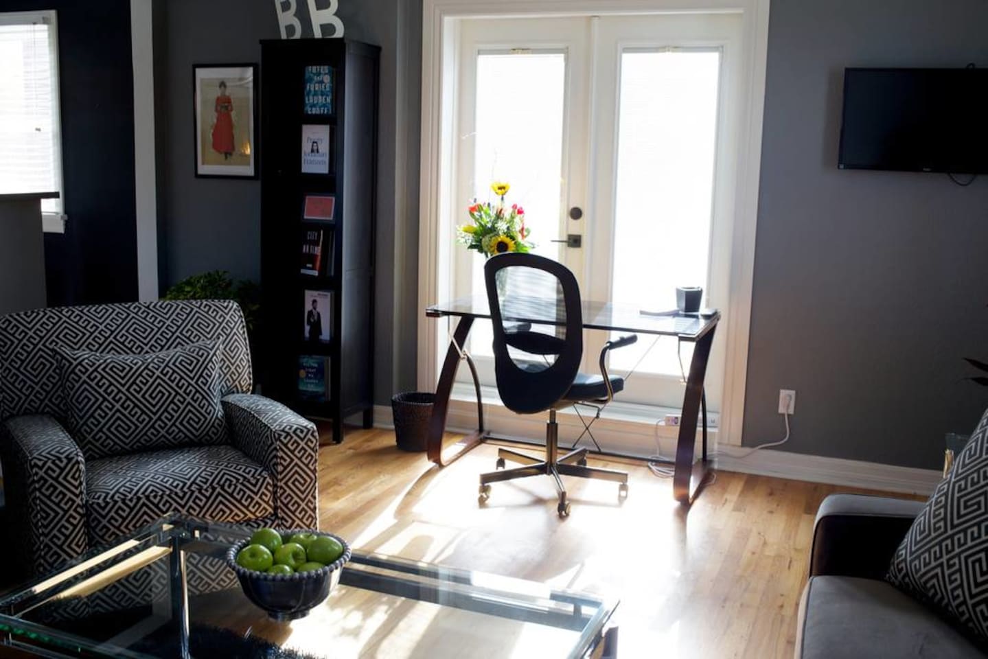 BookBed is fully furnished with a queen-size bed, a queen sleeper sofa, luxury linens, a modern kitchen and a private bathroom. Other amenities include: high-speed WiFi, cable TV, central heat and air conditioning, washer and dryer, and free street parking. Guest enjoy the convenience of the cafe and bar downstairs for breakfast, lunch, and dinner while browsing the excellent book selection. All BookBed guests receive discounts at BookBar.