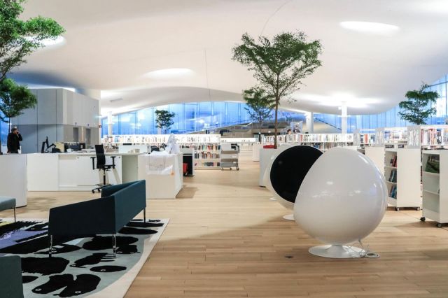 Each story is designed to create a unique atmosphere. The first floor offers an open-plan hall, event spaces, and a cinema. The second floor is home to designated work areas including photography, music and recording studios, games rooms, and meeting rooms. The third floor combines relaxation, learning, research, and play with a vast book collection, reading areas and a children’s play area. Oodi also has specially designed robots to facilitate the transportation of books in the library, freeing professional staff free to assist visitors.