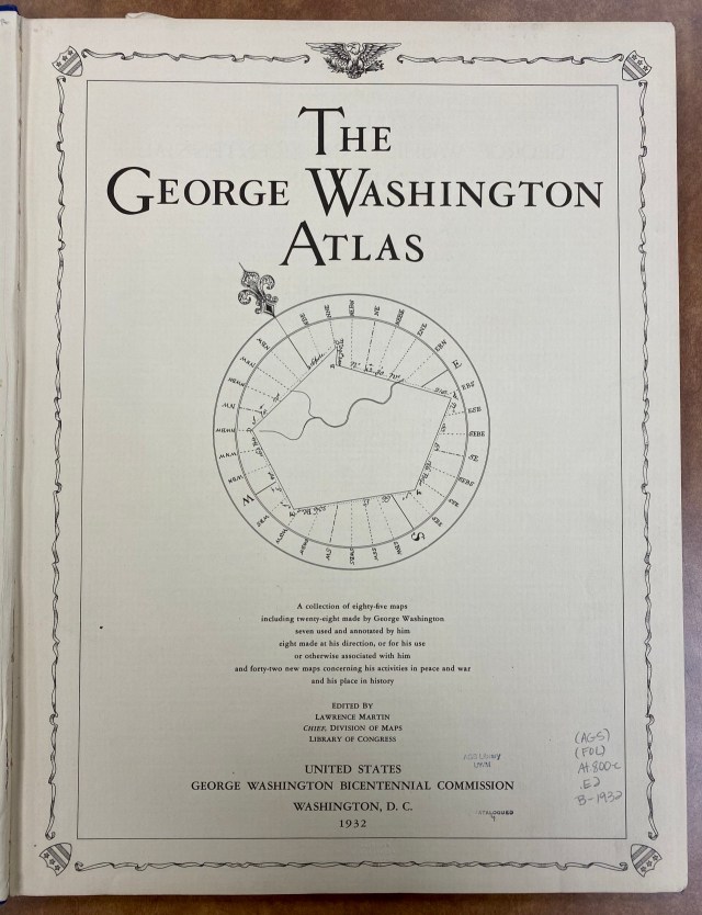 Happy birthday, George Washington! To celebrate the actual anniversary, check out this Atlas created in 1932 by the United States George Washington Bicentennial Commission. It is a collection of 85 maps that are associated with Washington including many maps he personally drew (he was a land surveyor throughout his life) or annotated. Also included in the atlas are maps that show Washington’s travels and legacy.