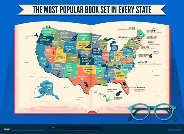 According to Good Reads this map offers the most popular book in each U.S. state.