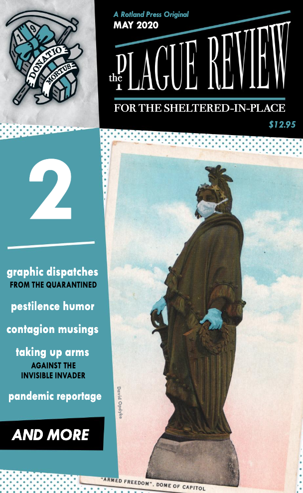 The Detroit-based publisher Rotland Press advertises itself as “a fine publisher of excursions into humor + despair.” It is also the perfect vehicle for a literary and arts journal to help us cope with the overwhelming nature of the Covid-19 epidemic. This week they issued the second installment of The Plague Review, which is a compelling compilation of art, poetry, comics, essays, interviews and more.