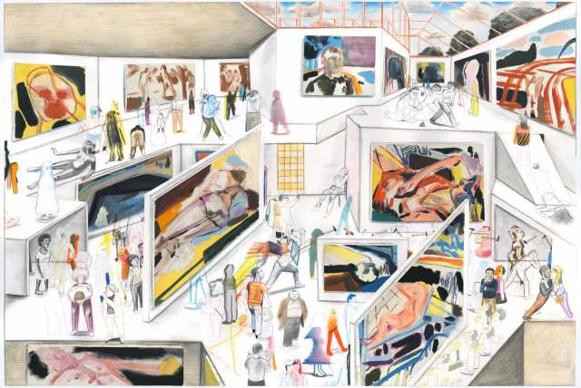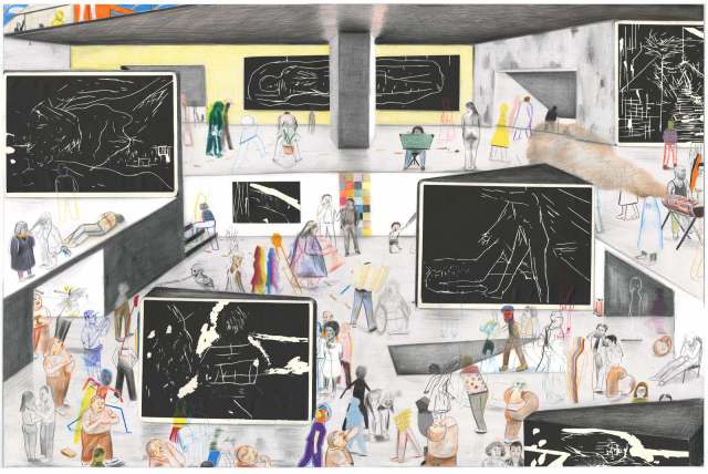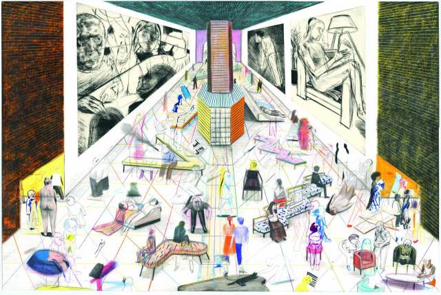 Foundation Kebbi is an imaginary museum created by Paris-based artist and illustrator Yann Kebbi. The fake cultural attraction is populated by the usual crowd of museum goers, tourists, lovers, and time wasters. However, if you look closely, you can also spot super heroes and the grim reaper among the brilliant exhibitions.