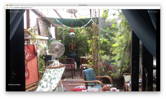 I’ve been a bit obsessive about visiting the website Window Swap this week. The brilliantly simple concept has folks around the world post short video clips out of their home windows. I dare you to try it without falling down the rabbit hole. Everyone is invited to submit a clip to share with the world. The wonderful project is by Sonali Ranjit and Vaishnav Balasubramaniam.