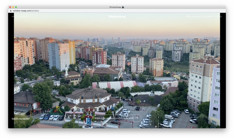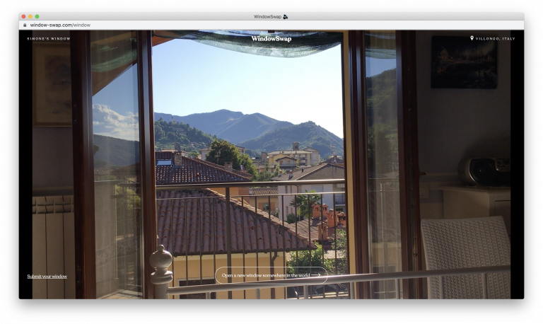 I’ve been a bit obsessive about visiting the website Window Swap this week. The brilliantly simple concept has folks around the world post short video clips out of their home windows. I dare you to try it without falling down the rabbit hole. Everyone is invited to submit a clip to share with the world. The wonderful project is by Sonali Ranjit and Vaishnav Balasubramaniam.