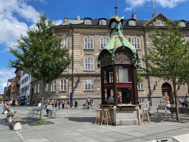 They are hexagon shaped, nine meters tall with a copper roof and granite base. There’s wood carvings with different motifs and at the very top a clock to show the time. The Coffee Collective’s newly renovated kiosk Convenient is located right next to Denmark’s busiest station, Nørreport.
