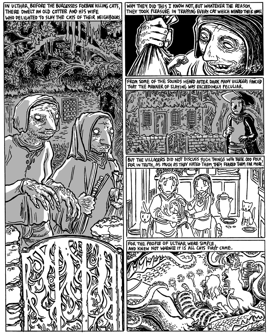 So we missed H.P.’s birthday yesterday, but to make up for that here’s a way cool graphic novelized version of one of his creepy stories. Lovecraft was a horrible racist bigoted son of a bitch, but he sure could spin a horror tale.