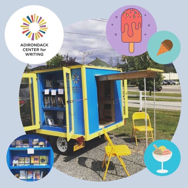 The staff of the Adirondack Center for Writing (ACW) in upstate New York partnered with the Book Nook in Saranac Lake, The Bookstore Plus in Lake Placid, TREES Adirondack Gifts & Books in Bolton Landing to visit small communities throughout the region that don’t have easy access to new books or don’t have their own bookstores. Throughout the summer, the rolling bookshop will be setting up at ice cream shops in the region.