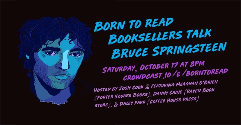 In the celebration of the poetic genius of Bruce Springsteen, Josh Cook (PSB), Meaghan O’Brien (PSB), Danny Caine (Raven), and Daley Farr (Coffee House Press) share their favorite Springsteen songs, discuss his narrative and poetic voice, and answer questions, They will also be collecting donations for the Book Industry Charitable Group (https://www.bincfoundation.org/). This event takes place on Crowdcast, and is free and open to all.