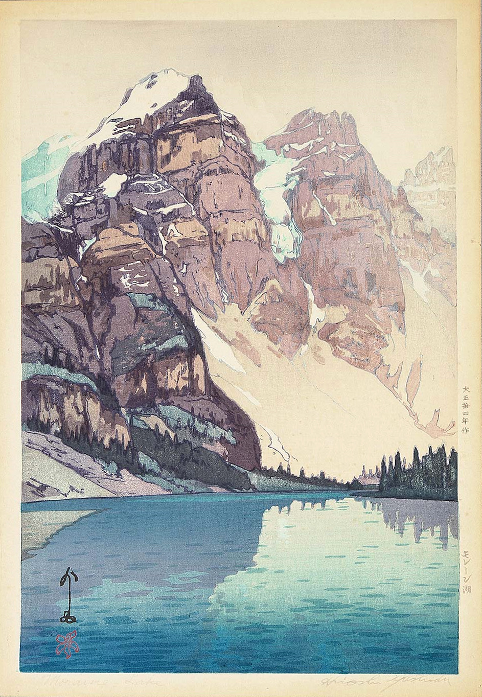 Hiroshi Yoshida (吉田 博, Yoshida Hiroshi, September 19, 1876 – April 5, 1950) was a 20th-century Japanese painter and woodblock printmaker. He is regarded as one of the greatest artists of the shin-hanga style, and is noted especially for his excellent landscape prints. Yoshida travelled widely, and was particularly known for his images of non-Japanese subjects done in traditional Japanese woodblock style, including the Taj Mahal, the Swiss Alps, the Grand Canyon, and other National Parks in the United States.