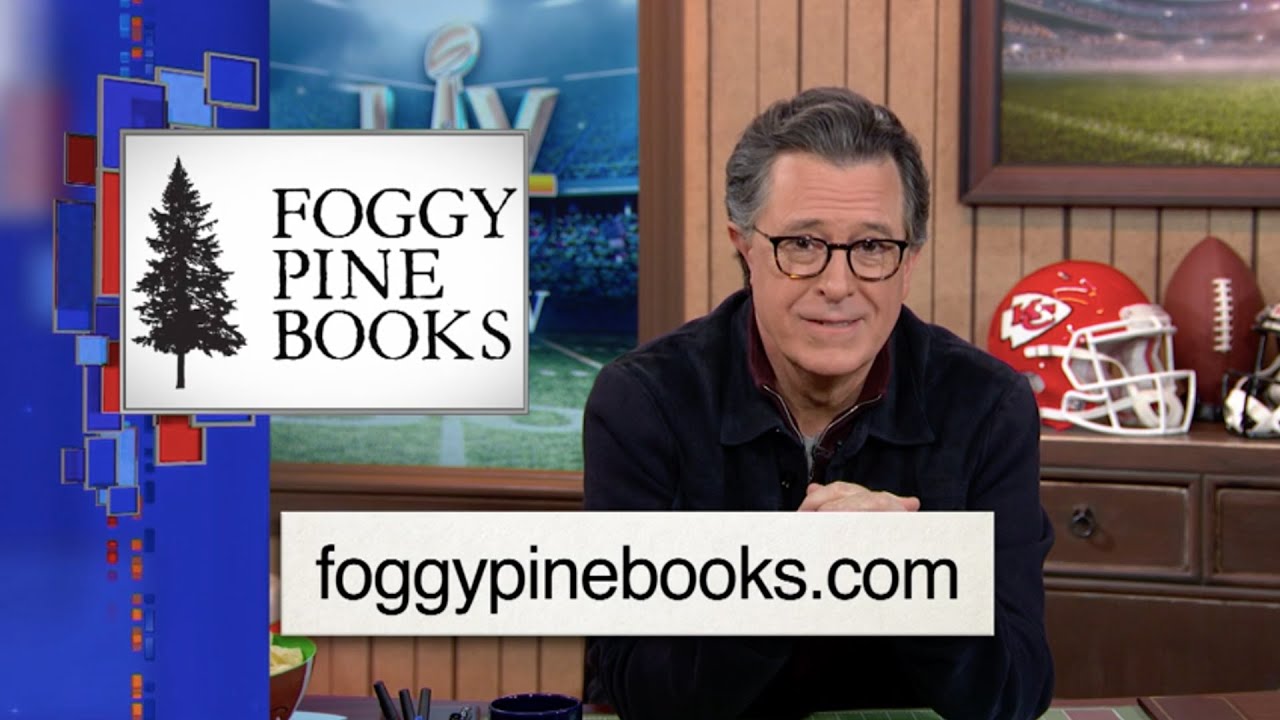 This Sunday, millions of people in the U.S. and around the world tuned in to watch the annual Super Bowl. Each year, a large percentage of the viewers watch just to see the often clever and funny commercials. On his special post-Super Bowl edition of The Late Show, Stephen Colbert featured a commercial for an unlikely business: indie bookseller Foggy Pine Books in Boone, N.C. Colbert explained, “Big companies aren’t the ones that need our support the most right now. It’s small businesses that have been hurt the most in this pandemic. Of course a small business could never afford the millions of dollars it would cost to produce and run an ad on CBS tonight, which is why we here The Late Show have decided to just pick one and just give it to them.”
