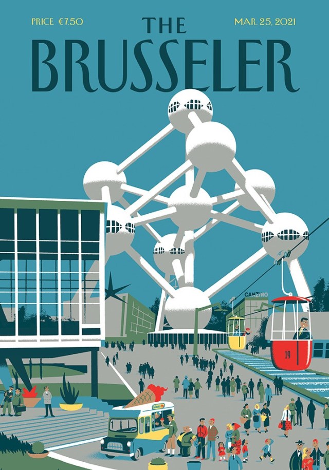 Over the years, I’ve seen quite a few attempts to pay homage to the brilliant cover art of the iconic The New Yorker magazine. None compares to the creativity of the project called The Brusseler from Belgium’s Maison de L’Image which brings together more than 100 Belgian and international artists and illustrators from all styles and techniques to offer their personal takes on both the Belgian capital and the incomparable covers of The New Yorker .