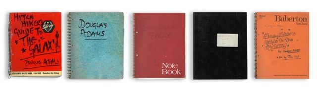 “The archive has a number of documents that reveal Adams’ feelings about the toil of writing. One page of erratically typed notes outlines his struggles: ‘Today I am monumentally fed up with the idea of writing. I haven’t actually written anything for two days, and that makes me fed up as well’. The same page reveals his struggles with the legacy of The Hitchhiker’s Guide to the Galaxy: ‘Arthur Dent is a burk. He does not interest me. Ford Prefect is a burk. He does not interest me. Zaphod Beeblebrox is a burk. He does not interest me. Marvin is a burk. He does not interest me. The Hitchhiker’s Guide to the Galaxy is a burk. It does not interest me.’ But then, in typical Adamsesque fashion, his complaining quickly morphs into an imagined conversation with a giant dragon called Lionel.