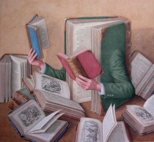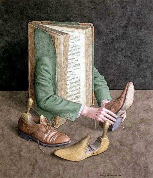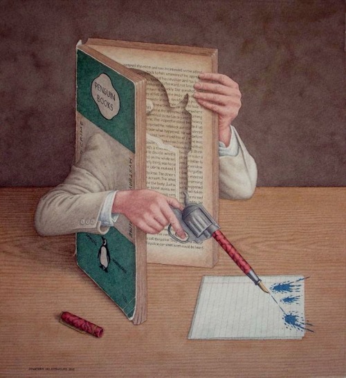 Rooting through my image files I came across this little series of paintings by British artist and illustrator Jonathan Wolstenholme. He is widely known for his amazingly detailed works deriving from a love of old books and of the paraphernalia associated with a bygone age whose hallmarks were finely skilled labor and exquisite craftsmanship in the production of all manner of objects.