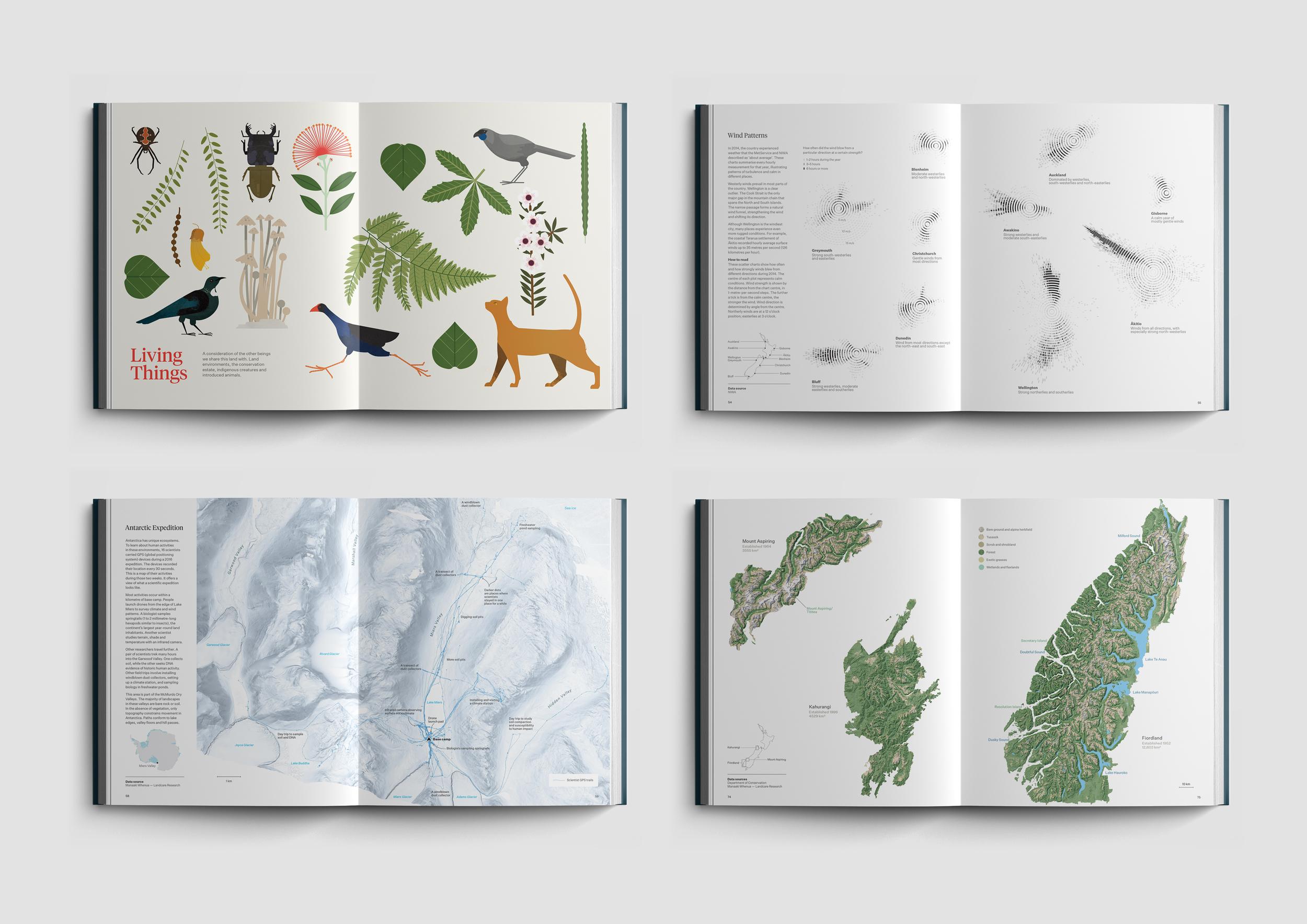 In case it may have slipped your notice, I have a bit of a thing for New Zealand, or Aotearoa as the Māori people call it. I recently stumbled upon We Are Here which is an atlas of Aotearoa – a book that helps New Zealanders make sense of their country, to grasp the scale, diversity and intricacies of Aotearoa. Designed by Tim Denee and Chris McDowall, this book features a gorgeous collection of maps, data visualizations, and illustrations. It’s an excellent non-tourist oriented introduction to the most beautiful and diverse nation on Earth.