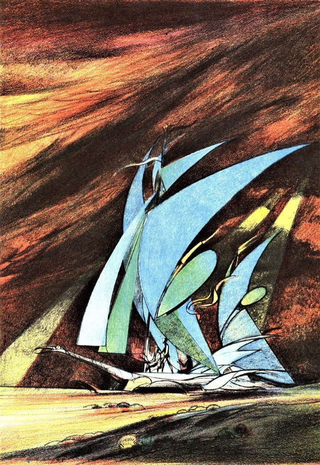 One of my favorite versions of The Martian Chronicles is the 1974 Limited Editions Club publication with  dramatic, full-color illustrations by Joseph Mugnaini. The special edition was limited to 2,000 copies and is now a sought after collector’s copy.