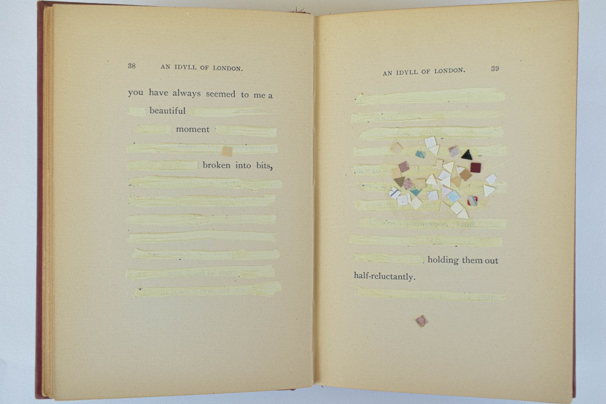 Mary Ruefle: Erasures continues at the Robert Frost Stone House Museum at Bennington College (121 Vermont Route 7a, Shaftsbury, Vermont) through October 31.