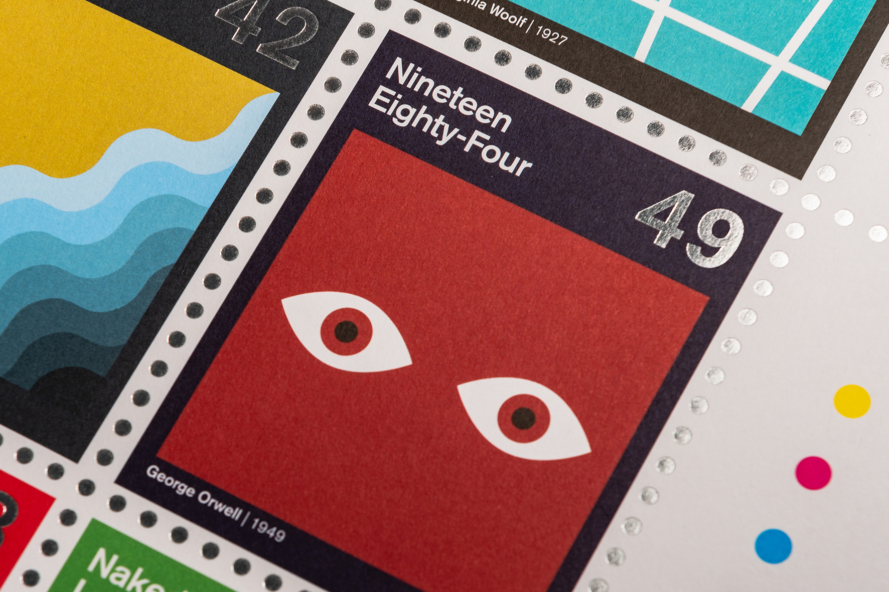 Each stamp features a graphic inspired by the book and the date of publication (in book form). Dorothy’s stamp prints of Modern Classics are available for purchase on their website.