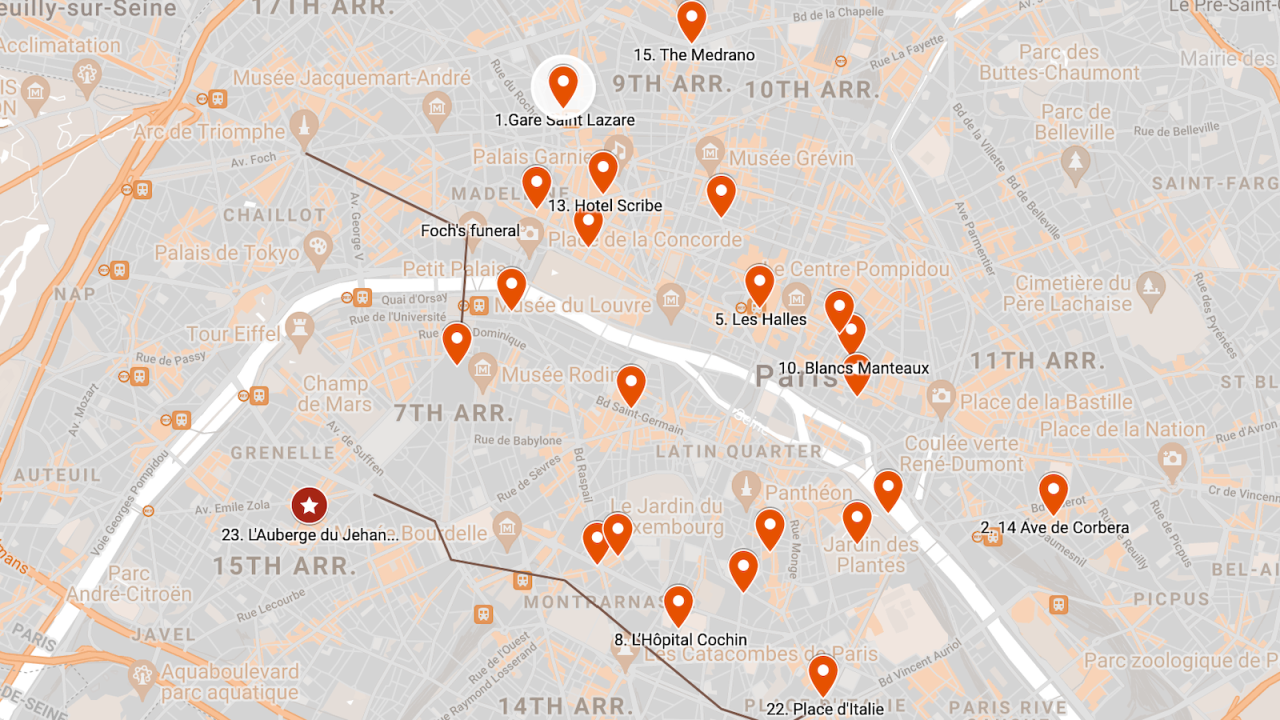 Their Google map is an excellent guide for exploring Paris through the eyes of the struggling author. The location pins aprovide an opportunity for users to follow the writer’s footsteps, as he made his life in Paris. For more on Orwell in Paris, check out the websites of Duncan Roberts and Darcy Moore. Check out their map in more detail here.